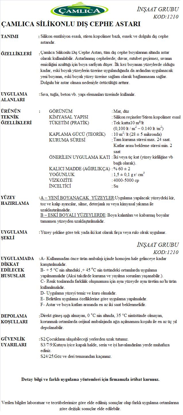 Ürün Adı | : | Silikonlu Dış Cephe Astarı |