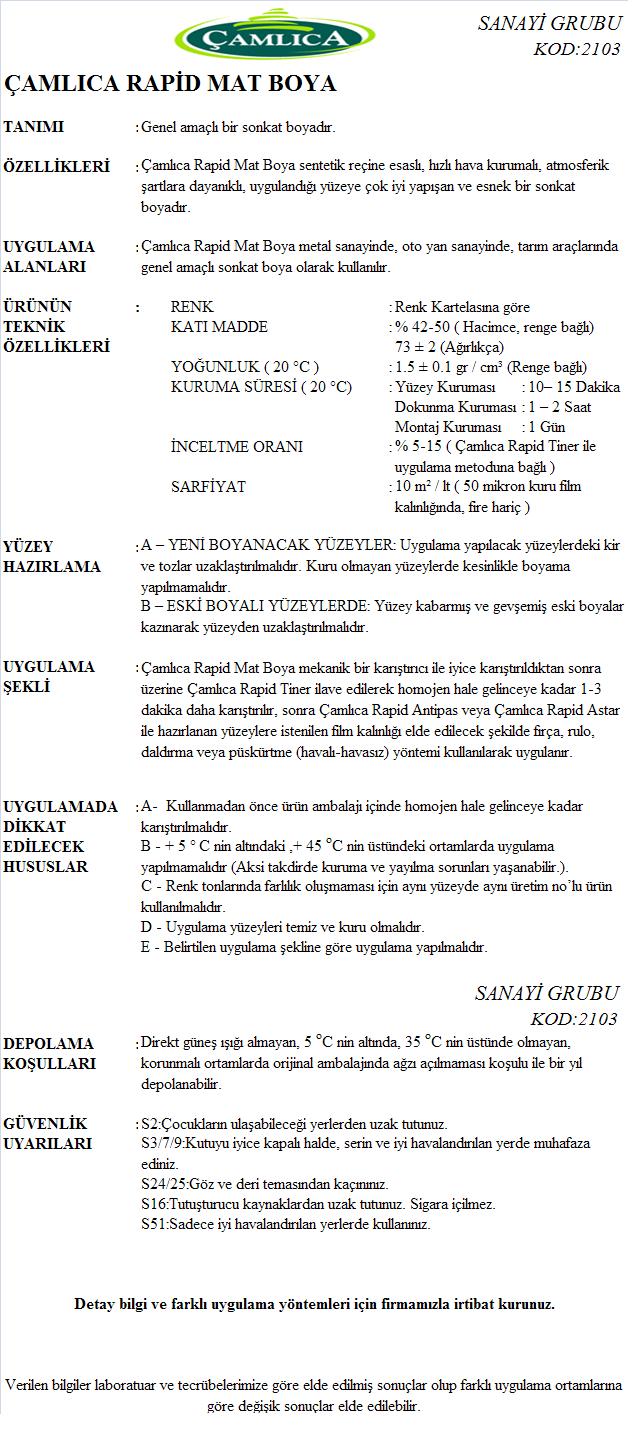 Ürün Adı | : | Rapid Boya Mat Siyah |
