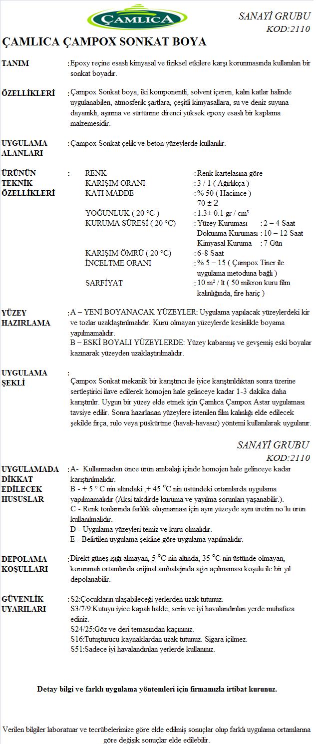 Ürün Adı | : | ÇAMPOX Epoxy Boya |